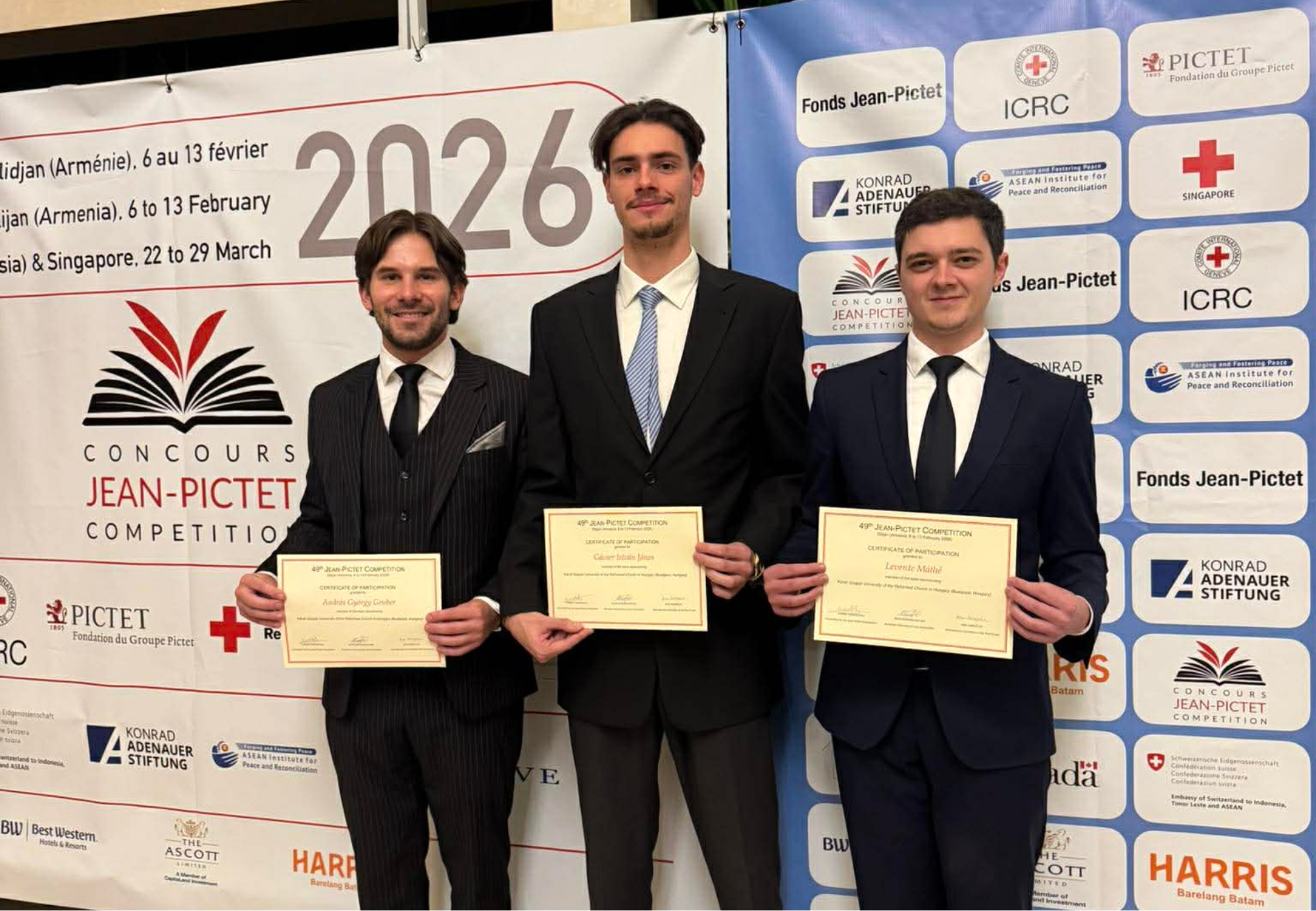 2026.02.26-án rendezték meg a Philip C. Jessup International Law Moot Court Competition 2026-os nemzeti fordulóját a ELTE Társadalomtudományi Kutatóközpont Jogtudományi Intézet szervezésében. A rangos nemzetközi jogi perbeszédverseny hazai megmérettetésén a Károli Gáspár Református Egyetem Állam- és Jogtudományi Kar ötfős hallgatói csapata is részt vett.