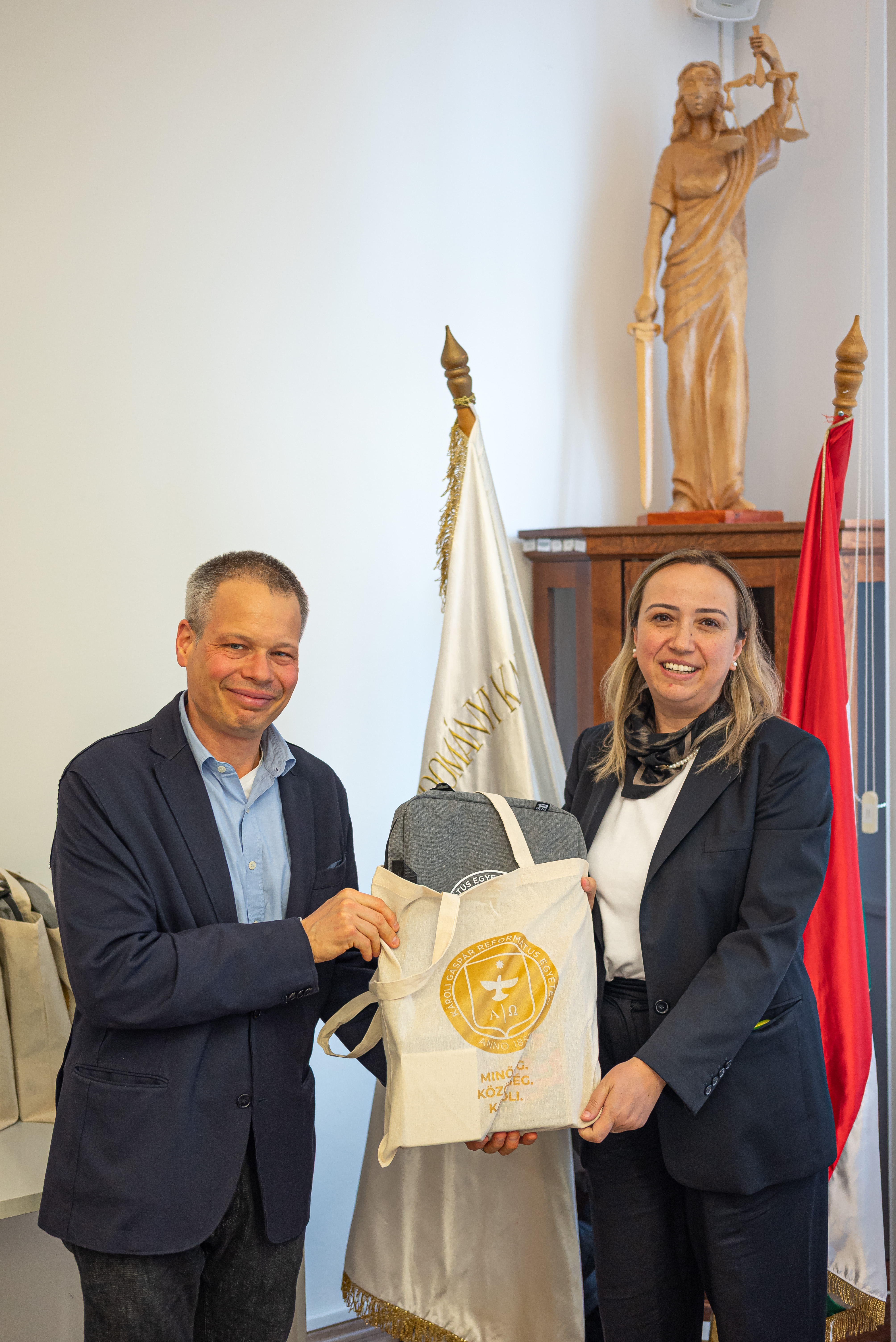 Megállapodás született Prof. Dr. Tóth J. Zoltán, a Károli Gáspár Református Egyetem Állam- és Jogtudományi Kar dékánja és Prof. Dr. Neslihan Karataş Durmuş az Ankara Yildirim Beyazit Egyetem Jogtudományi Kar dékánja között, miszerint 2028-ban a két egyetem elindítja közös képzését gazdasági jogi téren.